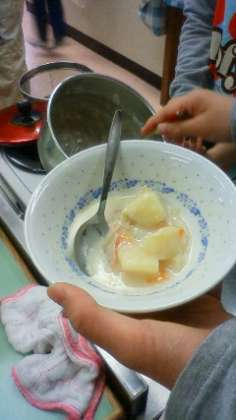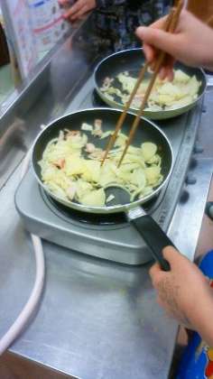 じゃがいもを使って調理実習をしました。ジャーマンポテトやシチューなどを作りました。おいしくできました。