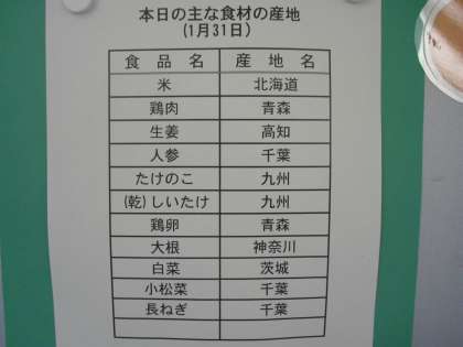 今日の献立は、そぼろごはん、牛乳、すいとん、黒蜜寒天です。