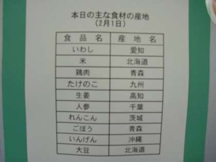 今日の献立は、豆ごはん、牛乳、がめ煮、いわしの丸干しです。