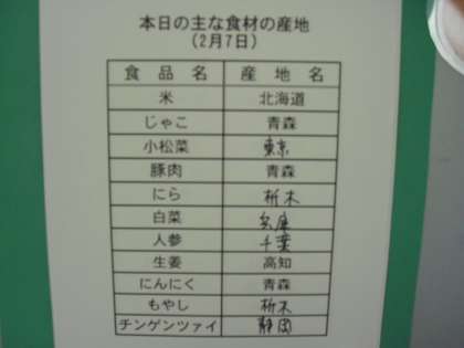 今日の献立は、青菜とじゃこのごはん、牛乳、棒餃子、塩ナムルです。