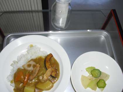 今日の献立は、かみかみカレーライス、牛乳、野菜の中華づけです。