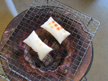 七輪を使っておもちを焼きました。焼き目もしっかりついています。