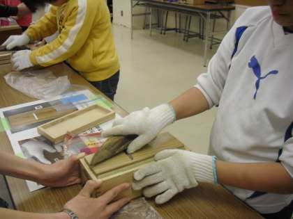 かつお節削り器に挑戦しました。みんなコツをつかむのが早く、おいしそうに削ることができました。