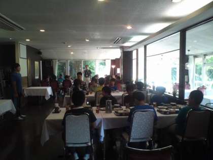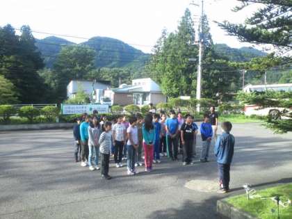 おはようございます。快晴で気持ちのよい朝です。ちょっと眠そうですが…朝会を行い、朝食をしっかり食べました。エネルギー充電完了!!
