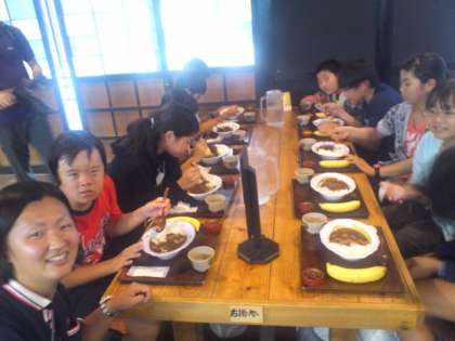 いっぱい楽しみました。昼食のカレーを食べ、日光江戸村にお別れです。日光に別れを告げ一路東京へ…気をつけて帰ります。