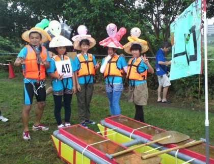 「アドベンチャーin 多摩川・いかだ下り」に12人の児童が三挺に分かれ参加しました。