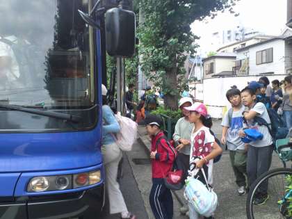 今日から川場移動教室(5年)です。出発式を終えて出発しました。