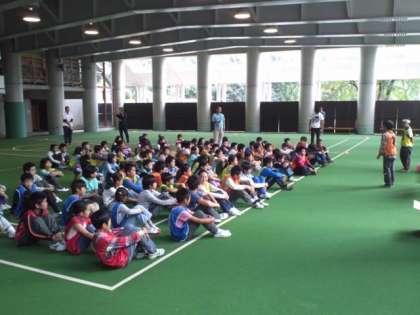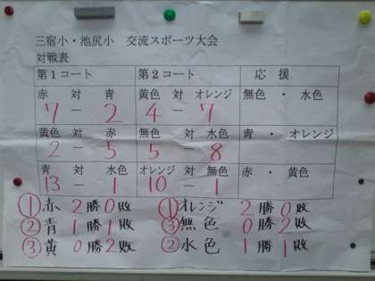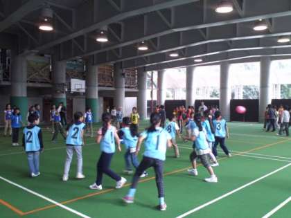 池尻小と三宿小の交流スポーツ大会です。二校が混合の6チームをつくった対抗ドッチボール大会です。