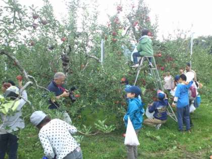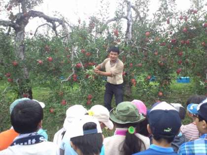 宮田りんご園で、川場の農業のお話を聞き、りんご狩りをした後、とっても美味しいりんごジュースを飲みました!!