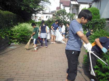 6年生が緑道を清掃しました。グループで協力し合いながら、植え込みの中の空き缶まで拾いました。「達成感あるよな。」「1学期よりごみの種類が多い。」というつぶやきも聞こえてきます。