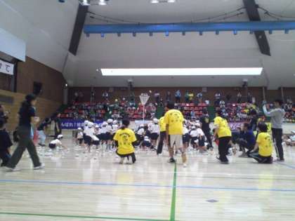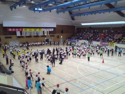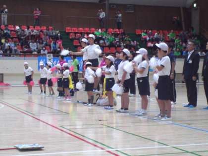わかば学級の連合運動会が、世田谷区立総合運動場体育館で行われました。三宿小は開会式の『運動会の歌』を担当しました。