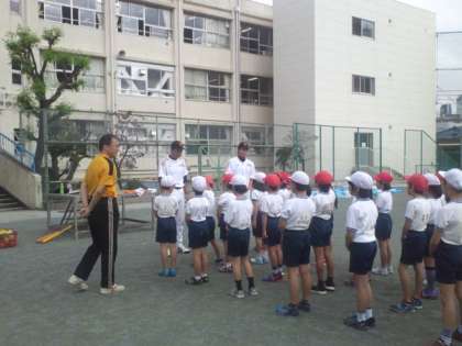 3・4時間目に、3・4年生が巨人軍の方にティーボール(野球型)の指導を受けました。一学年2時間指導していただきます。次回は水曜日に予定されています。