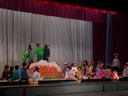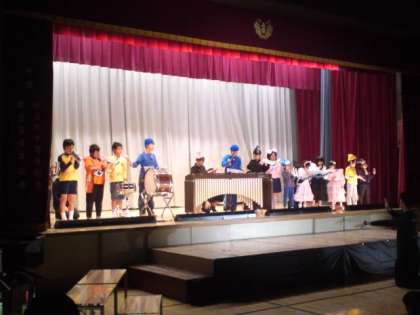 1年生「アイウエオリババ」3年生「バンコートランドの愉快な猫たち」わかば学級「ドラえもんとわかばの大冒険!」です。
