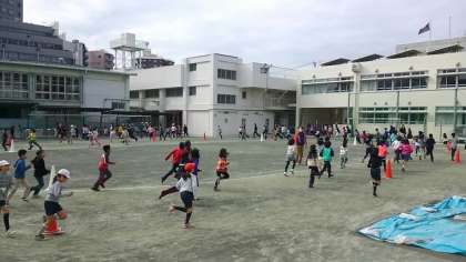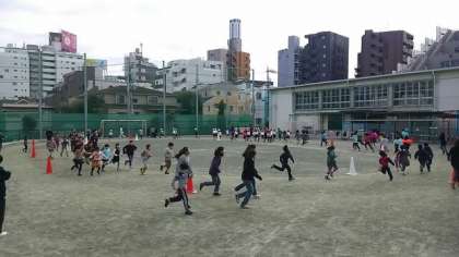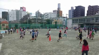 今月は持久走週間を2回に分けて行います。期間は①2/3〜2/8②2/17〜2/21です。中休みを前半後半に分け、3学年ずつ音楽に合わせて校庭を走っています。