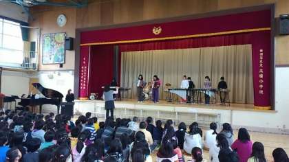 今日は3月3日、ひな祭りです。職員室前には、可愛い雛人形が飾られています。中休みに体育館で器楽クラブの発表会を行いました。ホール・ニュー・ワールドとパート・オブ・ユア・ワールドの2曲を演奏しました。多くの児童が発表を聴きに体育館に集まりました。