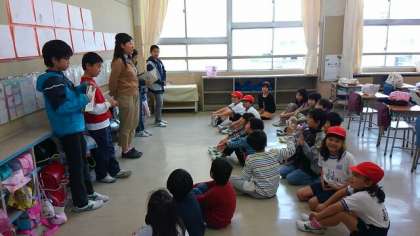 平成26年度のたてわり班が発足しました。たてわり班は、1〜6年生がそれぞれ20班に別れ、全学年が混ざった1グループ12人程のメンバーで構成されています。今日は、掃除なしのロング昼休みを活用して、自己紹介や班の写真を撮ったりした後、班ごとに遊びました。1年間よろしくお願いします。