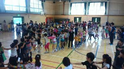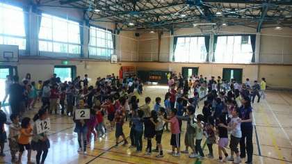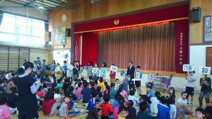 今日の集会はたてわり班集会です。たてわり班ごと列になって、ジャンケン列車をしました。最後は、9班と16班と19班で決勝ジャンケンをして、9班が優勝しました。これからのたてわり班集会が楽しみです。