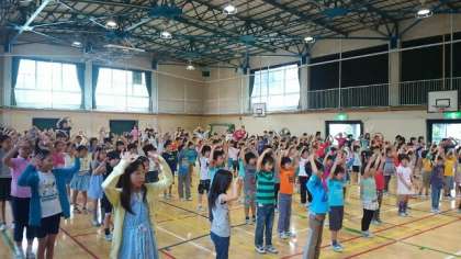 今朝は、代表委員会集会でした。内容は、運動会のスローガンと赤白のマスコットの発表、三宿音頭の練習をしました。スローガンは『全力を出し、ひかれ白組、もえろ赤組、笑顔と涙の運動会』です。また、児童から募集したマスコットの中から、それぞれのマスコットが決まりました。児童が応募した作品は職員室前に掲示してあります。