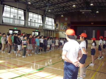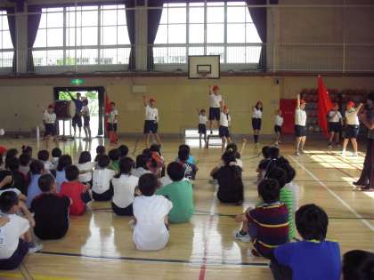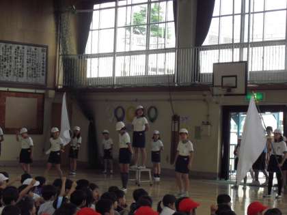 いよいよ運動会まで後1週間となりました。今朝は全校児童で応援の練習をしました。応援団の指揮のもと、みんなの声が体育館中に響き渡りました。