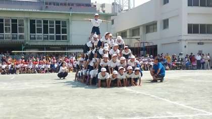 午後の部-2- 組体操(5・6年)、大玉送り(全校)です。5・6年生の組体操は、全員の心を一つにして大成功でした。最後の全校大玉送りは、白熱した戦いになりました。