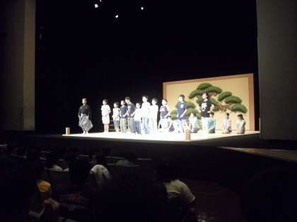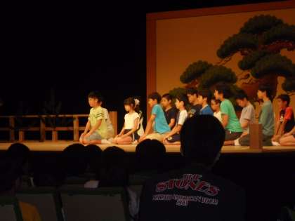 6年生は、日本語の学習の一つとして、狂言「附子」を見に行きました。はじめにワークショップ形式で、狂言の振る舞いを学習しました。実際に体験したことで、狂言のおもしろさや表現の難しさを実感できたようです。