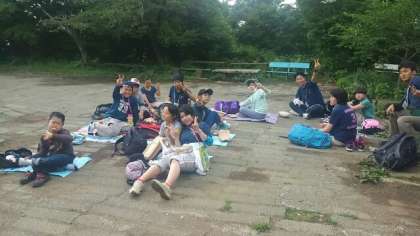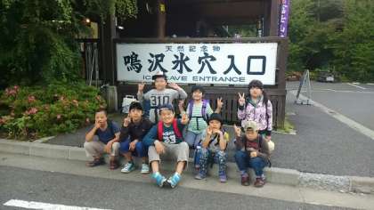 ハイキングに出発…。風穴・氷穴・紅葉台・展望台・90分かけて登りきりました。お弁当を食べてから下山します。