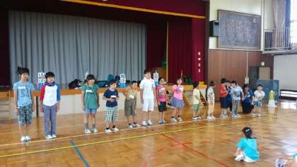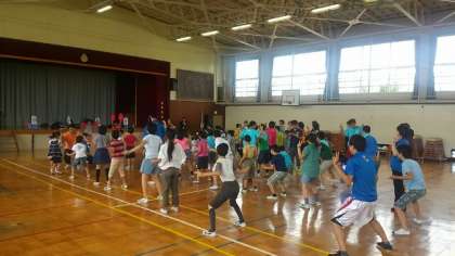山崎小(なかよし学級)・弦巻小(6くみ)・旭小(ひまらや学級)・三宿小(わかば学級)の4校が、山崎小学校に集まって、4校交流をしました。学級紹介、ダンス(エビカニクス)、ゲーム(猛獣猟・爆弾ゲーム)、歌(にじ)を歌って楽しい時間を過ごしました。お友だちもたくさんできました。