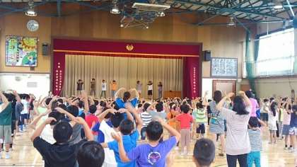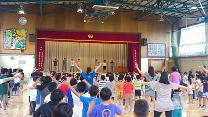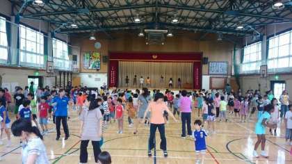 今日の児童集会は、ダンス集会でした。集会委員会が中心になって、「ジンギスカン」と「ヤングマン」を踊りました。汗をかきながら一生懸命踊る姿がたくさん見られました。このダンスはサバイバルキャンプでも踊る予定です。