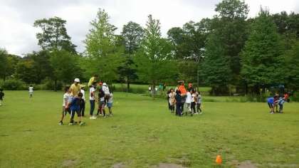 自然豊かな公園で、氷おにや騎馬戦鬼ごっこなどのレクを行い、昼食を食べました。