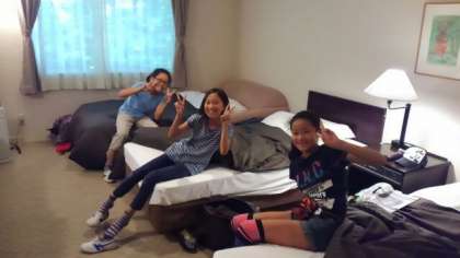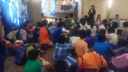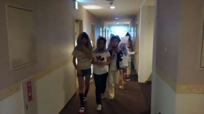 宿泊先のホテルナチュラルガーデンに到着しました。開園式を終え各部屋での生活が始まりました。部屋ごとに避難訓練をして、部屋の片付けをしました。