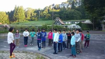 おはようございます。川場の天気は晴れです。はりつめた空気の中で朝の会をしました…朝食の準備をてきぱきして「いただきます。」しっかり食べて、元気に雨乞い山に出発します。
