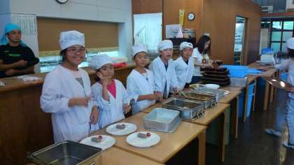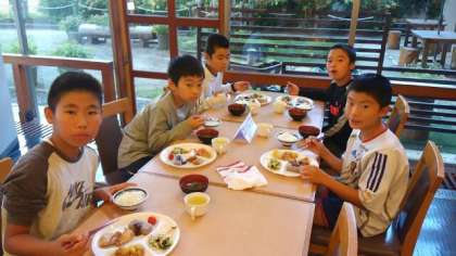 2日目の夕食です。準備もスムーズに出来るようになりました。「いただきます!!」昼食が早かったので、おかわりをする児童が多くいました。