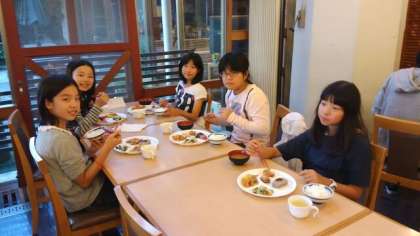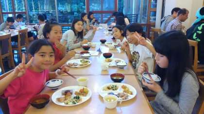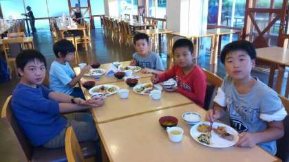 2日目の夕食です。準備もスムーズに出来るようになりました。「いただきます!!」昼食が早かったので、おかわりをする児童が多くいました。