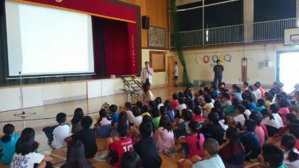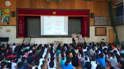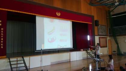 全校朝会で、学校歯科医の石井孝典 先生に9月の歯科健診の結果 、小学生のみがき残しの多い歯、歯みがきの仕方などについてお話していただきました。また、「 生えはじめた歯にまだ歯肉かぶさっているときはどうしたらいいですか 」などの質問にも答えていただきました。