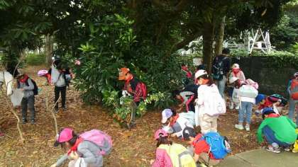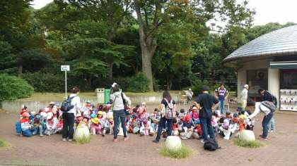 1・2年生が、秋探しで駒沢公園に行きました。どんぐりを探したり、色づいた木々の葉を拾ったりしました。例年よりどんぐりは少ない気がしましたが、子供たちはいっぱい拾っていました。拾った後に、1・2年生の班になって遊びました。
