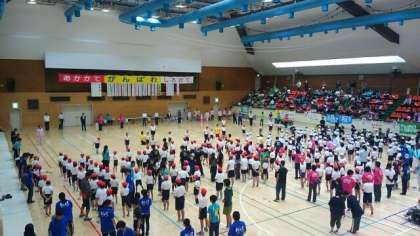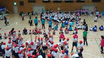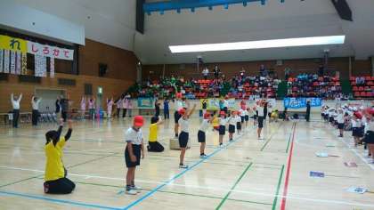 わかば学級の連合運動会が、世田谷区立総合運動場体育館で行われました。区内の特別支援学級15校が集まりました。三宿小は、『はじめのたいそう』を担当しました。