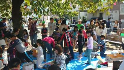 3年生がたぬきまつりに参加しました。保護者の方にご協力いただいた品物を仕分けして、グループごとに値段を付けフリーマーケット体験をしました。お祭りの最後に三宿音頭を踊りました。