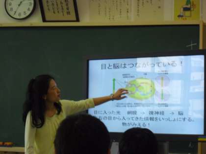 11月12日5時間目 4年生が学校眼科医の高本先生から目の授業を受けました。