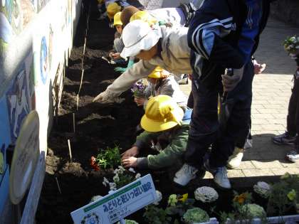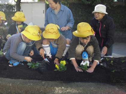 11月13日、1年生は緑道に出かけ、地域の「楽働クラブ」の皆さんに球根や花の植え方を教えていただきました。とてもていねいに教えていただいたので、1年生も上手に植えることができました。子どもたちからは、「土がふわふわで気持ちよかったよ!」、「もう1回植えてみたいな!」などと、楽しく活動できた感想がたくさん聞こえてきました。春には、緑道の花壇に、1年生が植えたチューリップやクロッカスがきれいに咲くことでしょう。今からとても楽しみです。