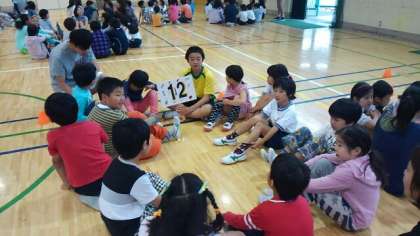 今年度初めてのたてわり班集会は、1・2・3班の班長が中心になり「早口言葉」集会をしました。早口言葉は「となりのきゃくはよくかきくうきゃくだ」でした。班ごとに練習して発表をしました。