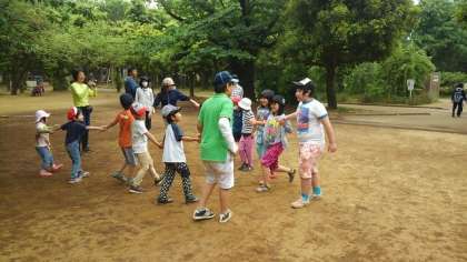 天候が心配でしたが、世田谷公園まで歩いて遠足に行きました。午前中は、高学年が中心になり、色おに・かくれんぼ・花いちもんめをして遊びました。お弁当を食べてから遊具で自由に遊びました。1日、仲よく楽しむことがてきました。