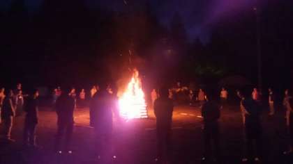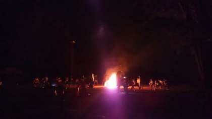 川場村の山の神から、 協力の火、団結の火、平和の火を授かり、キャンプファイヤーが始まりました。歌って、踊ってみんなの心に残るキャンプファイヤーになりました。この後は、お風呂に入って消灯です。明日も天気になりますように…