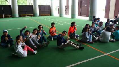 アップルパイ&ミックスジュースを飲んでパワーを充電です。これから、入浴・手紙書き・自由時間です。