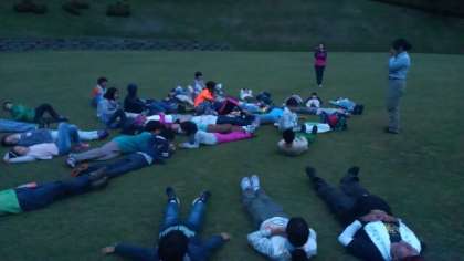 ナイトハイクが始まります。川場の方にレクチャーを受け、暗闇で五感を研ぎ澄まし自然を感じました。