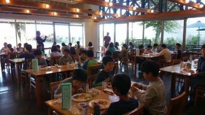 天気は晴れ、川場での生活は最終日です。朝食をしっかり食べ、荷物整理・部屋の片付けをします。