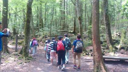 ハイキング出発…!! 全員が、氷穴・紅葉台・三湖台まで120分かけて登りました。
