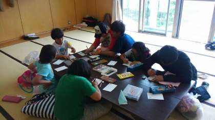 ゼリー&オレンジジュースを飲んで、お手紙を書きました。その後は、入浴とフリータイムです。