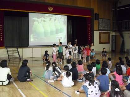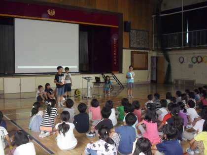 今日は保健給食委員会集会でした。保健給食委員が手洗いの問題を出したり、1番石けんが使われているクラスを発表したりしました。
