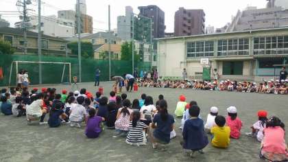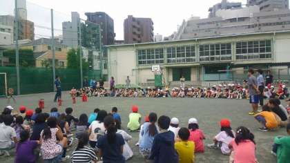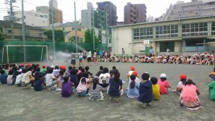今学期最後の避難訓練です。休み時間に火災が発生したという仮定で行いました。最後に消防署の方から消火器の使い方を学びました。