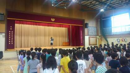 1学期の終業式を体育館で行いました。45日間の夏休みで「何か1つ自慢になることを!!」チャレンジしてほしいです。生活指導部から子ども達に「こういうスイカ」の話をしました。1年生は担任から初めて通知表をもらいました。一学期間、ご理解ご協力ありがとうございました。